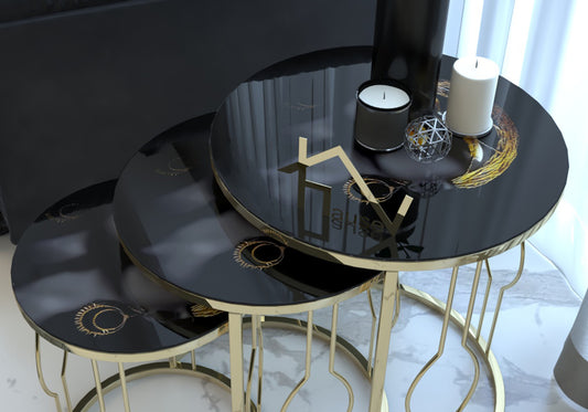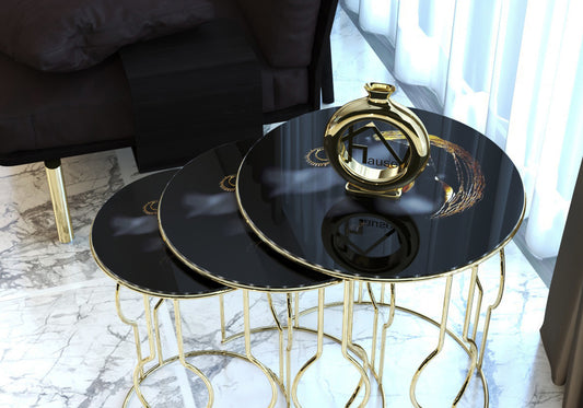 Arap Kızı Kırılmaz Parlak Camlı Telli Gold Metal Zigon Sehpa MELODİ