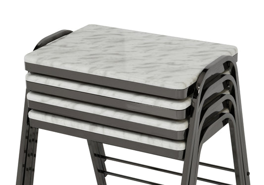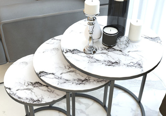 Siyah Statik Beyaz Mermer Desenli Kırılmaz Camlı Metal Zigon Sehpa MORA