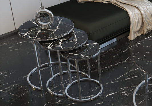 Siyah Mermer Gümüş Metal Orta Sehpa GEZEGEN