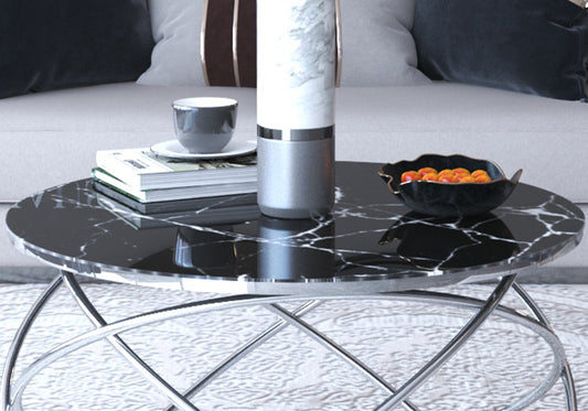 Siyah Mermer Gümüş Metal Orta Sehpa RÜYA