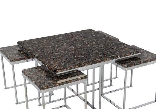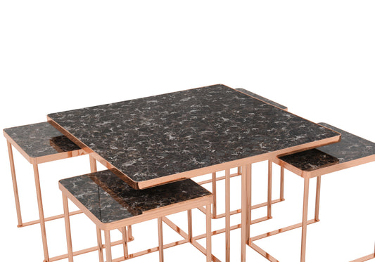 Kare Orta Sehpa Kahve Taş 4 + 1 LARA
