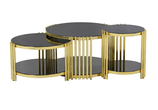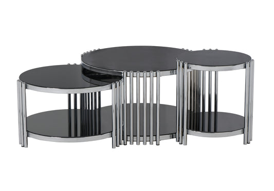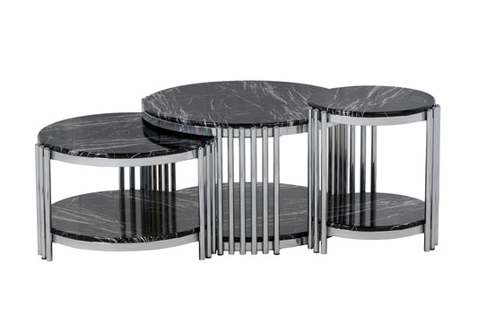 Hasır Yuvarlak Orta Sehpa Siyah-Krom 2 + 1 BOLERA