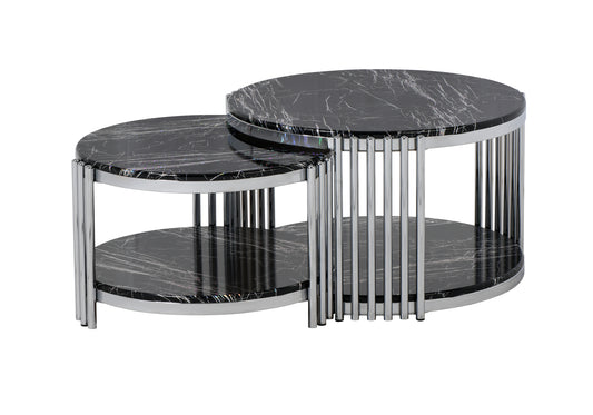 Hasır Yuvarlak Orta Sehpa Siyah-Krom 1 + 1 BOLERA
