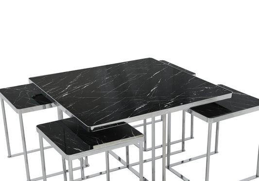 Kare Orta Sehpa Siyah Damarlı 4 + 1 LARA