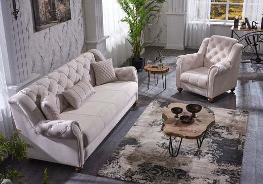 Berjer Modern Kapitoneli Beyaz TORONTO
