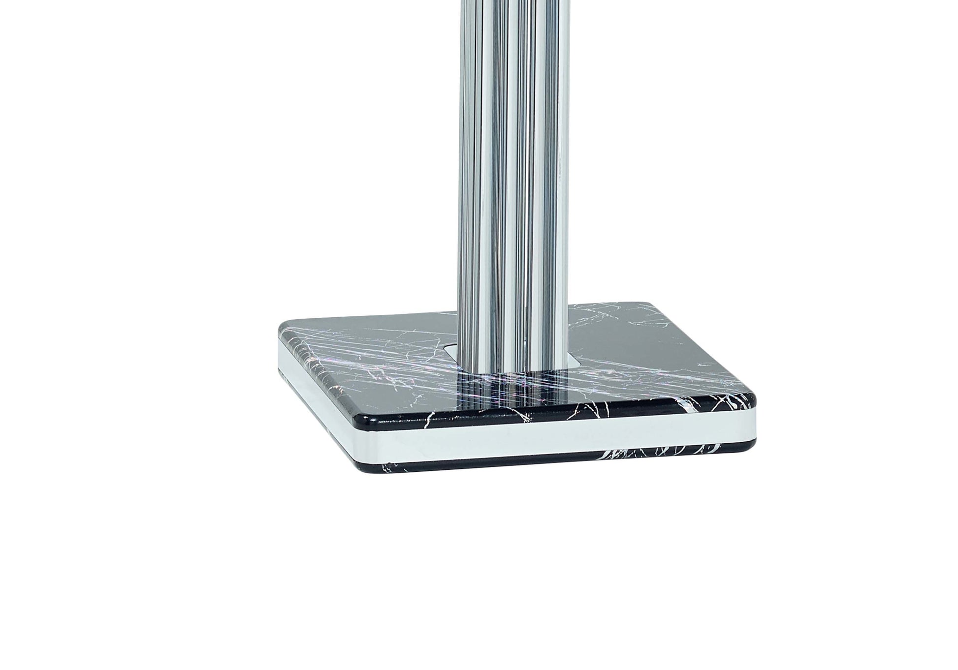 Lambaderin üst kısmı zarif siyah renkte, ayakları ise parlak krom kaplı metalden üretilmiştir. Tabanı siyah krom desenli parlak MDF malzemeden yapılmış ve etrafında şık krom detaylarla süslenmiştir. Özgün tasarımı sayesinde evinizde benzersiz bir atmosfer yaratır. Kaliteli malzemeleri sayesinde uzun ömürlü ve dayanıklıdır.